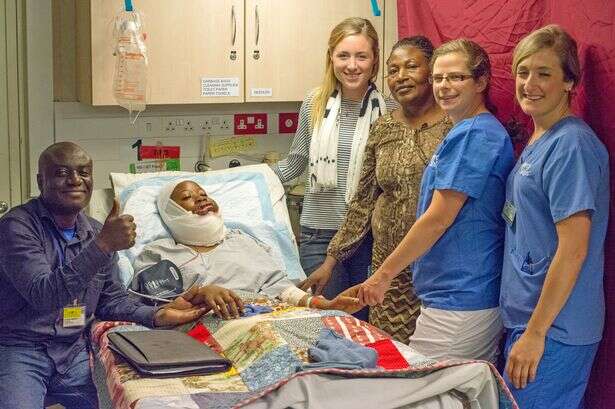 Médicos de um hospital local não conseguiram ajudá-la, no entanto, um pastor cristão encontrou um lugar para ela ter uma operação para salvar sua vid, a bordo do Africa Mercy, do grupo Mercy Ships, uma organização não governamental (ONG) com bases cristãs, que possui um navio-hospital para prestar atendimento médico em diversos países do mundo.